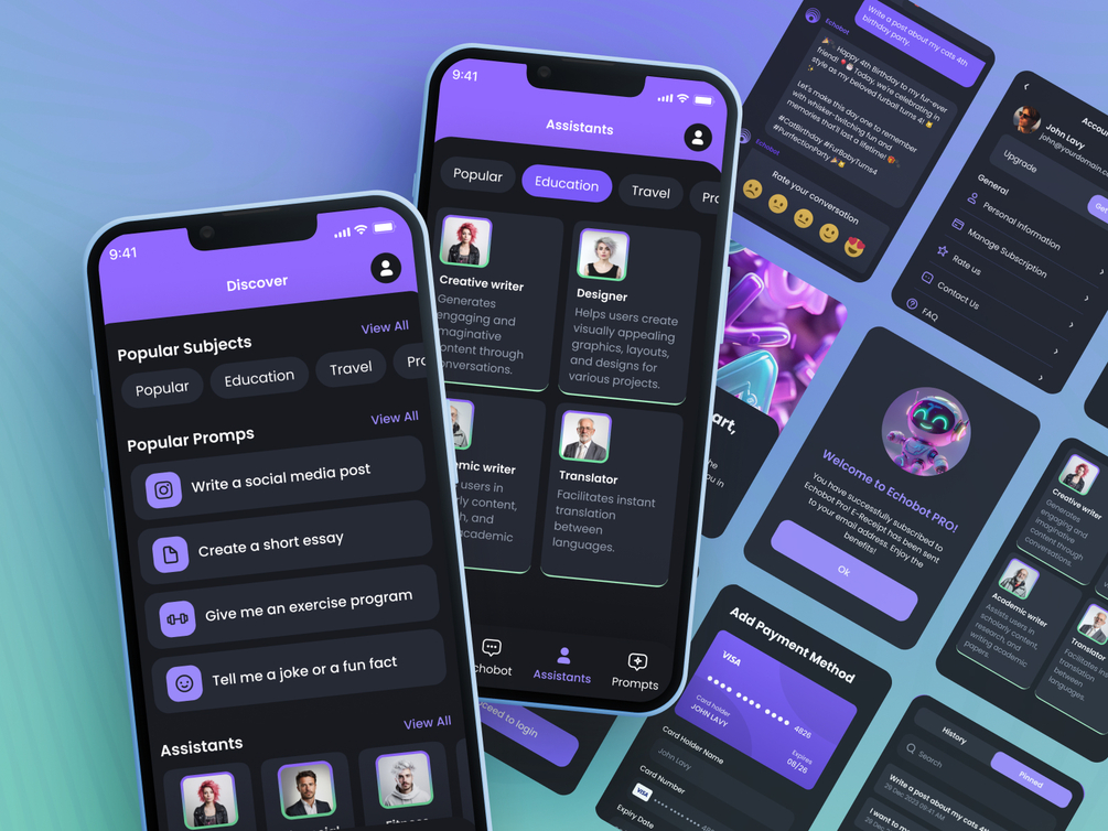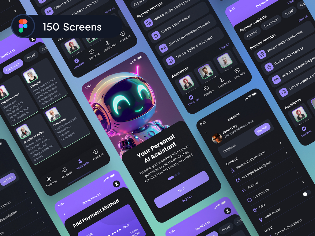 AI Chatbot Assistant is designed in a modern and trendy style, you can easily edit and customize all elements with design components which can speed up design process for your projects. File includes 150 screens which is 100% editable & customizable.